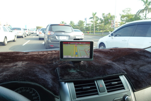 原本導航系統附贈的是吸在玻璃上的車架,但喵爸覺得位置有點高,所以買了原廠的矽膠車架來使用