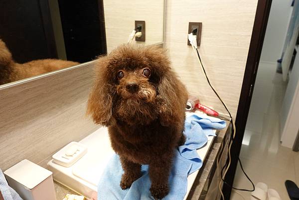 因為她的毛髮比較稀疏,所以擦一下很快就乾了~