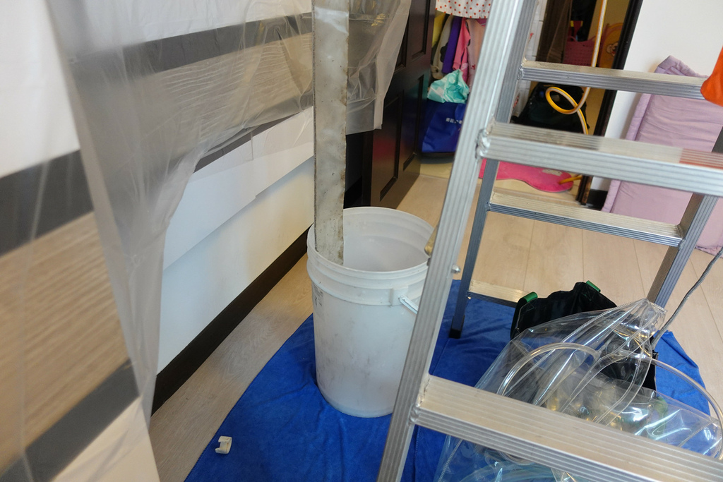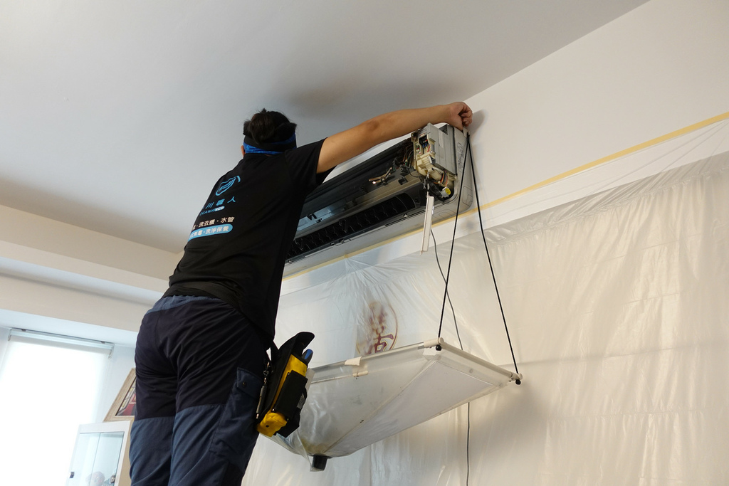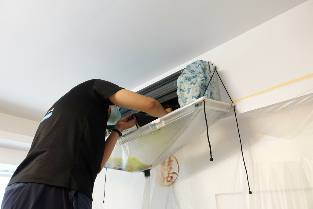 拆解完之後,在冷氣下方掛上盛水盤,等等就要開始進行本體清潔~