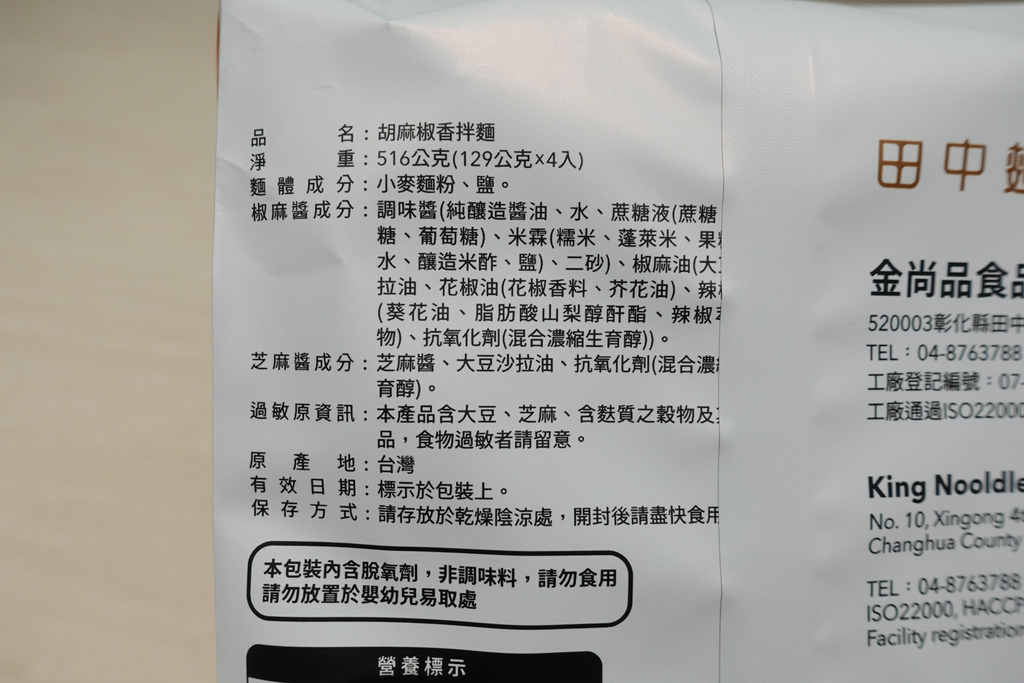 這次試吃的產品就是金尚品新推出的自有品牌: 田中麵廠-胡麻椒香乾拌麵!