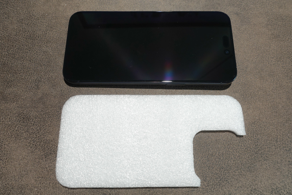 將保護墊墊在手機下,避免桌面刮傷到手機背面(真是貼心的設計)~