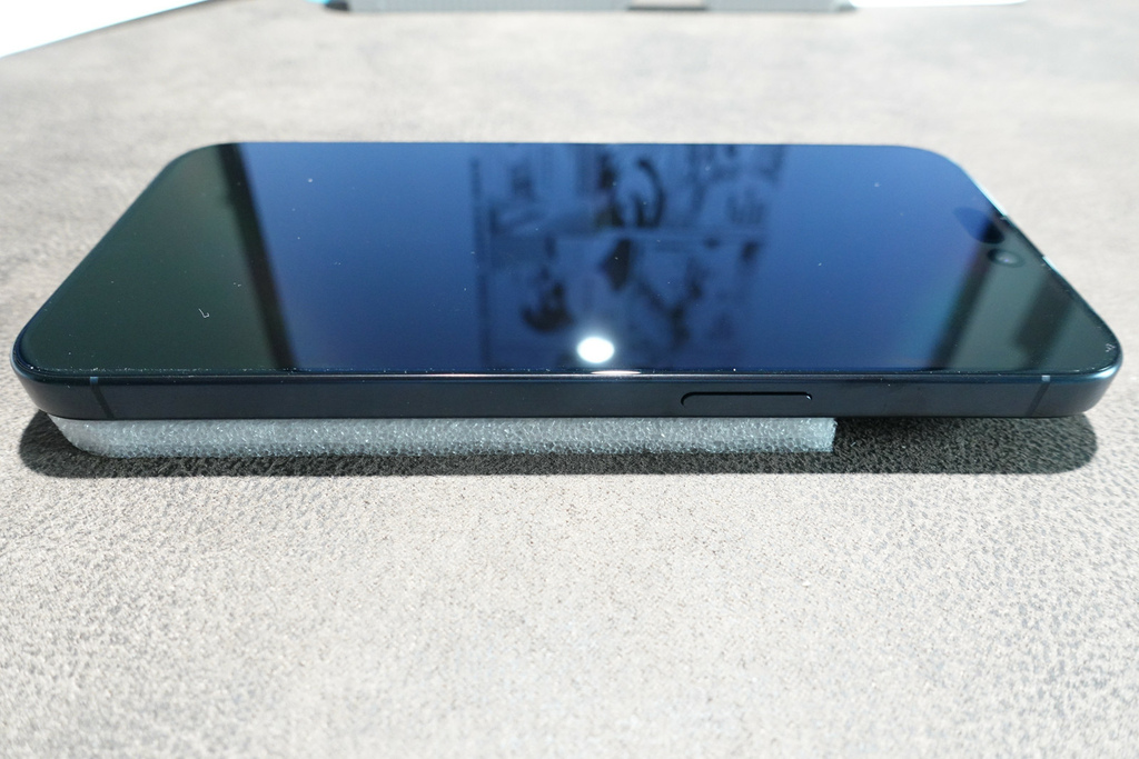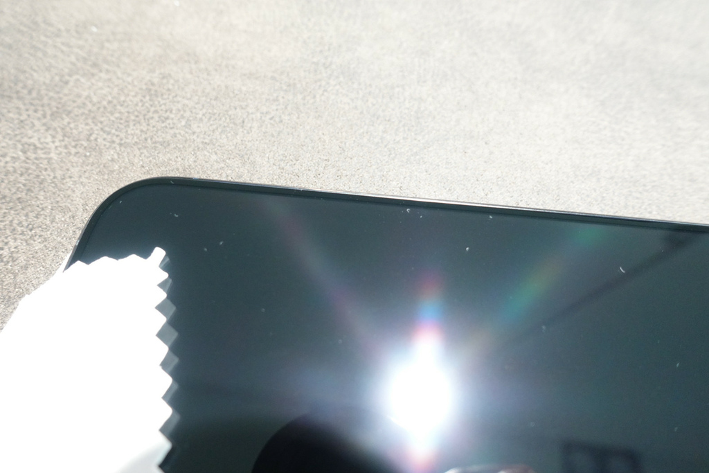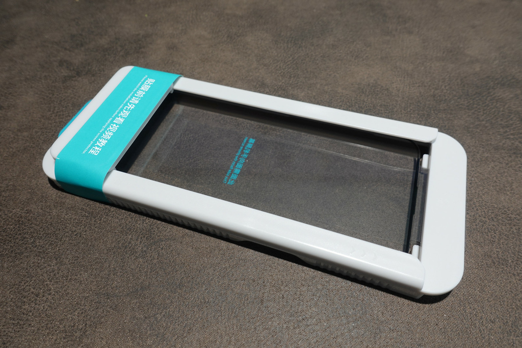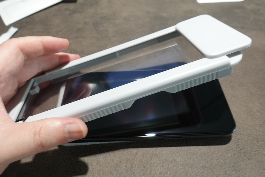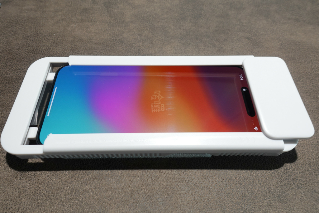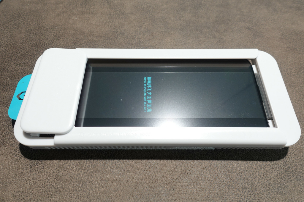 再來用大拇指按壓推進器,將其緩慢的推動到右側,使鋼化膜自動排氣~