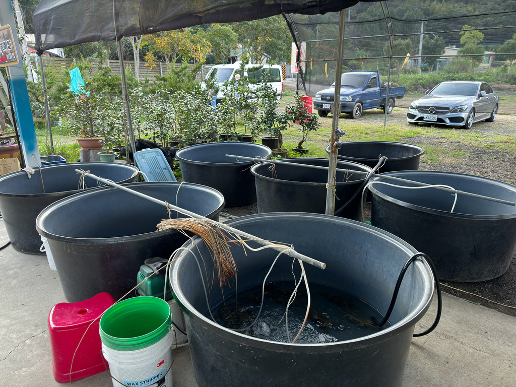 老闆曾新豐原種植茶花,約11年前當苗栗縣長到茶花園的時候,曾提到大閘蟹養殖,