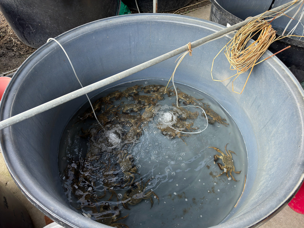 在124乙線邊搭篷進行銷售的田美大閘蟹是苗栗縣優質大閘蟹產銷協會的會員,