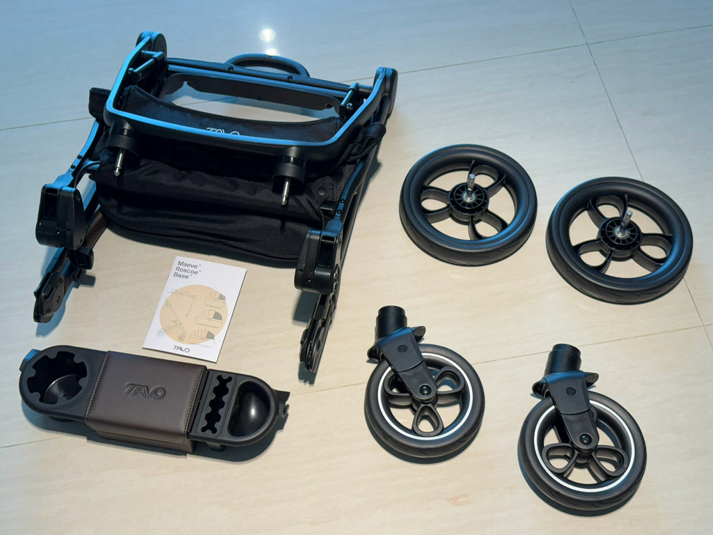 內含:說明書、車架、置物籃、前後輪(採用耐磨 EVA 輪胎,推行滑順又安靜)。