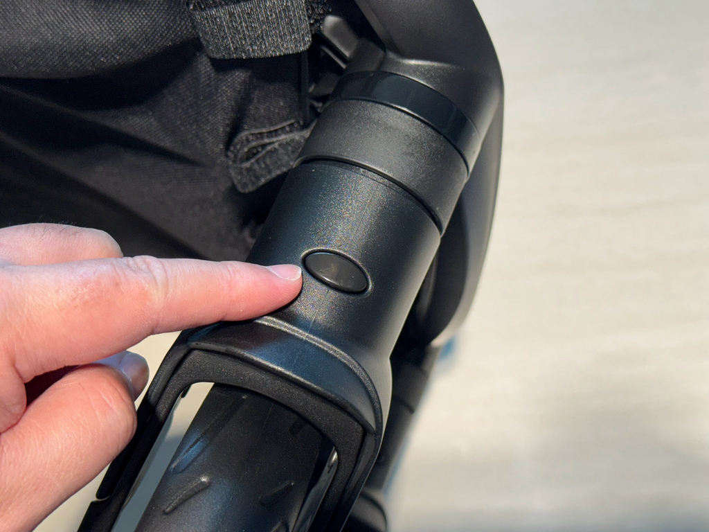 折操作簡單,單手搞定!按下安全鎖與收合按鈕,車架自動收合且能直立放置。