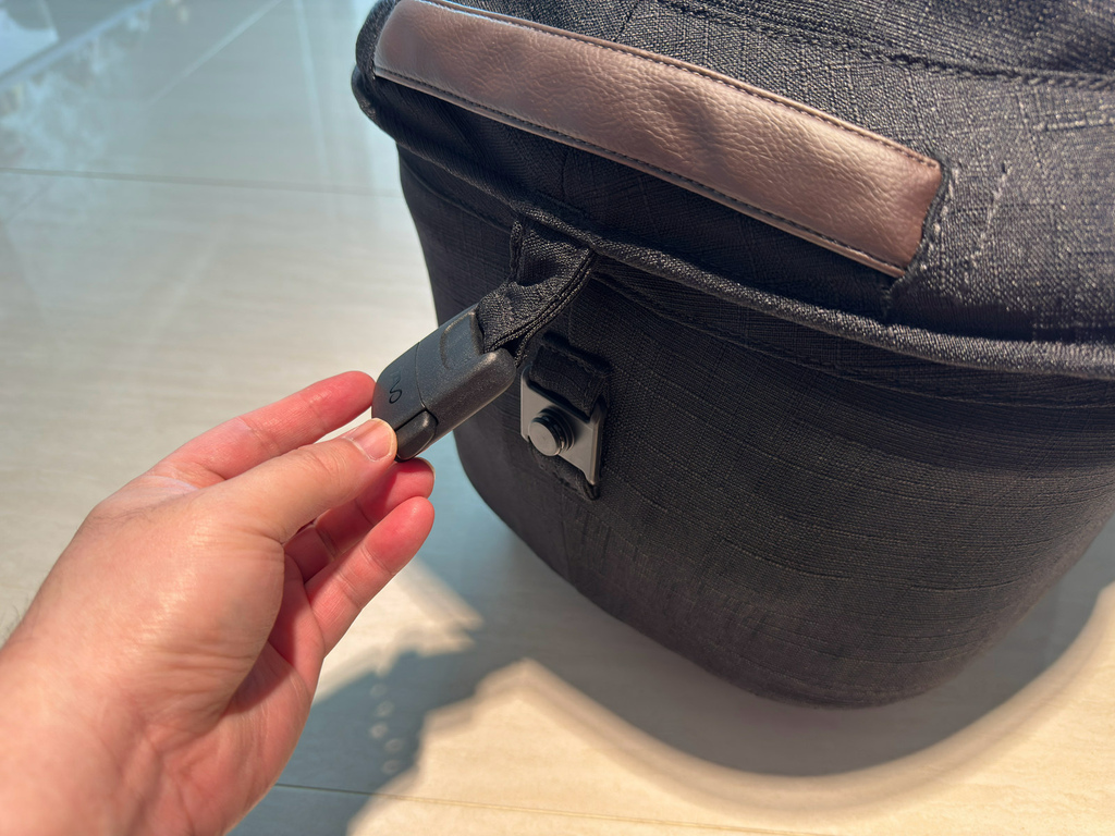 若要解開提籃,只需按壓底座釋鎖按鈕+安全鎖,同時將提籃向上提即可。