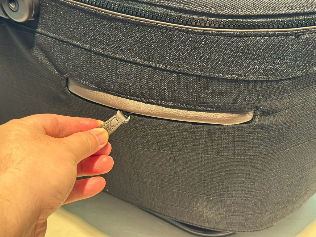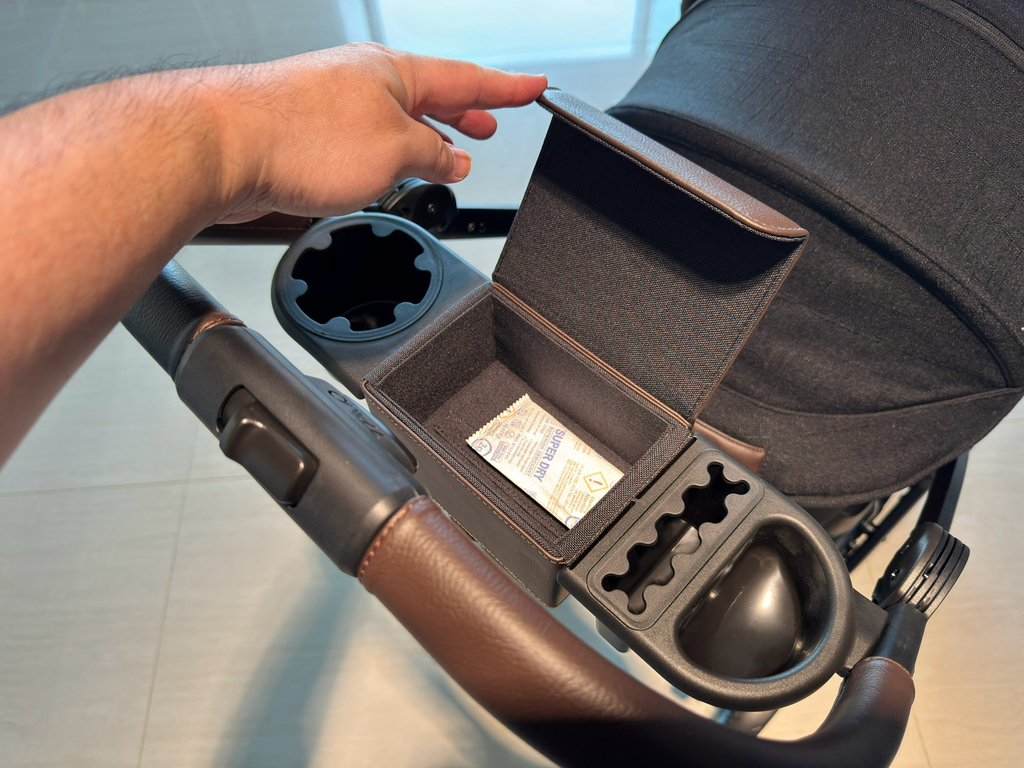 頂級皮革包覆手把和儲物收納格,出行時可輕鬆置放手機、寵物零食等隨身小物~