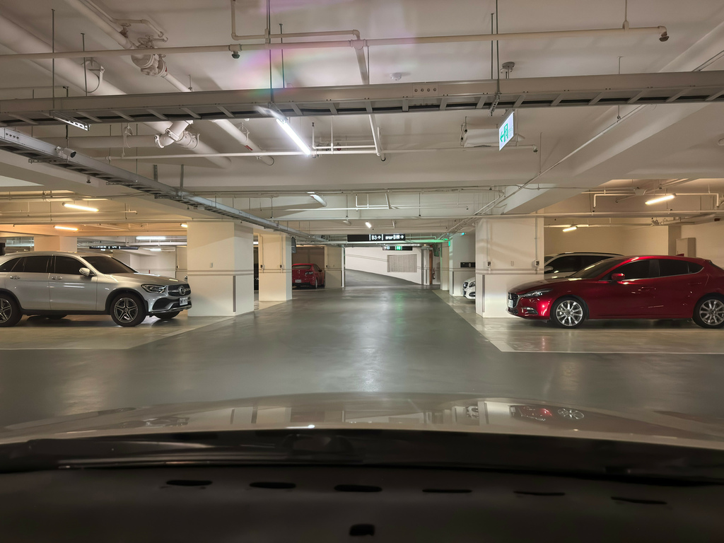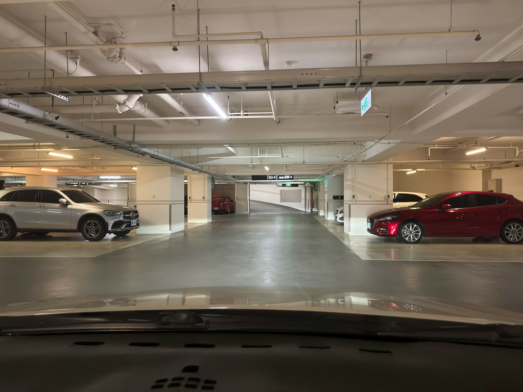 喵爸站在車前觀察,果然不會閃到人,合格!!!